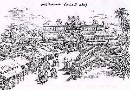 LocationSwamimalai is a sylvan village, situated about five kilometers west of Kumbakonam on the banks of a tributary of river Cauvery. The temple is situated very close to the bus stand and the railway station is about two kilometers away. It is well connected to and surrounded by important places like Kumbakonam, Tiruvidaimarutur, Mayiladuthurai, Papanasam, Tanjavur etc. Mythology and HistorySwamimalai is fourth among the six padai veedu or sacred shrines dedicated to Lord Muruga. The presiding deity here expounded the meaning of the Pranava mantra OM to his own Father Lord Siva Himself. Mythology says that saint Bhrugu before commencing an arduous tavam or penance, got the boon that anybody disturbing his mediation will forget all his knowledge. Such was the power of the penance that the sacred fire emanating from the head of the saint reached up to the heavens, and the frightened devas surrendered to Lord Siva praying for his grace. The Lord extinguished the sacred fire by covering the saint's head by hand. With the saint's penance thus disturbed the Lord became oblivious of all his knowledge and is said to have regained them by learning the Pranava mantra from Lord Muruga at this shrine. Once when Brahma, the lord of all creations was proceeding to Kailasa, the ever-playful child Lord Muruga asked him for the meaning of the Pranava OM. When Brahma admitted his ignorance, the Lord imprisoned him. With Brahma imprisoned, all creations came to a standstill and the devas prayed to Lord Siva to get Brahma released. When Muruga insisted that the imprisonment was a just punishment for the ignorance of Brahma, Lord Siva asked him whether he himself knew the meaning of the primordial Pranava OM. Lord Muruga said that he knew the meaning of OM and can expound it to the latter only if he can accept him as guru and listen to the exposition as a devoted disciple. As Lord Siva acceded to the request of Lord Muruga and heard the exposition of OM as a disciple, the place came to be known as Swamimalai and the presiding deity as Swaminathan. The temple is built on an artificial hillock of about sixty feet height with sixty beautifully laid stone steps representing the Hindu cycle of sixty years - leading to the Lord . In the ground floor there are temples dedicated to Lord Sundareswarer and Goddesss Meenakshi. Hymns in praise of the presiding deity have been sung by saint Nakkeerar in Tirumurukatrupadai and by Saint Arunagirnathar in Tiruppukazh. Pujas and FestivalsDaily pujas to the deities are performed six times a day (six kalams). Usha Kalam, Kalasandhi and Uchikala poojas are performed in the forenoon and the afternoon poojas commencing from Sayaratchai and Rendam kalam are concluded with Arthajama pooja in the night.
